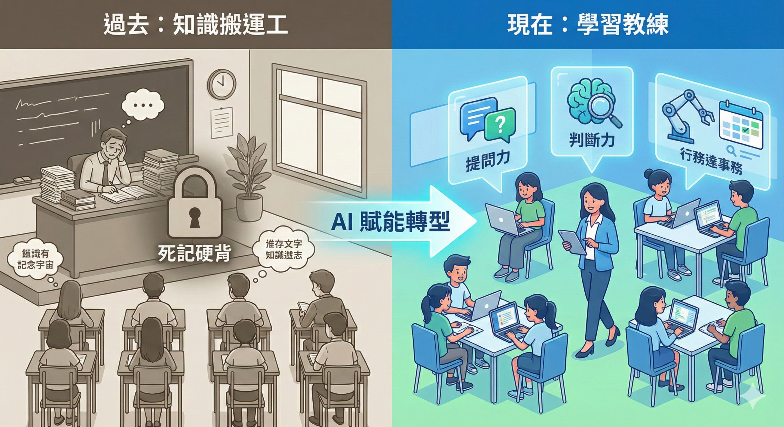 在 AI 時代,獲取知識的成本幾乎為零。老師不再是知識的唯一來源,這迫使教學模式必須轉型。